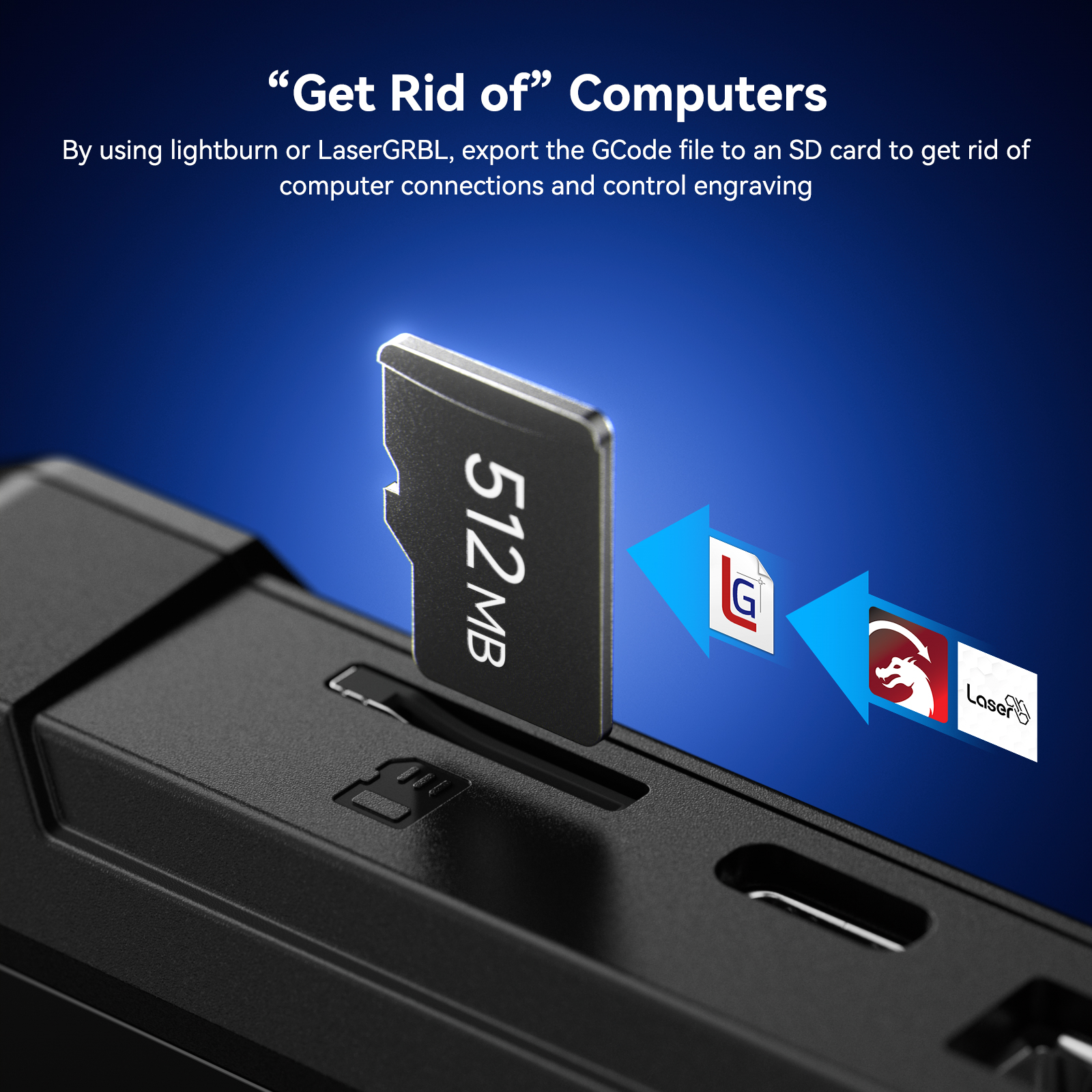 1. Offline Engraving: Simply copy the engraving or cutting files to the touch screen SD card, and then finish the engraving or cutting work offline through the 3.5-inch touch screen for convenience and practicality.